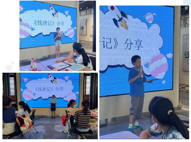 《钱唐记》写作和分享 一天的活动要结束啦,小朋友们围绕研学课程写下自己的心得体会,分享自己在学习杭州历史文化过程中的感悟。
