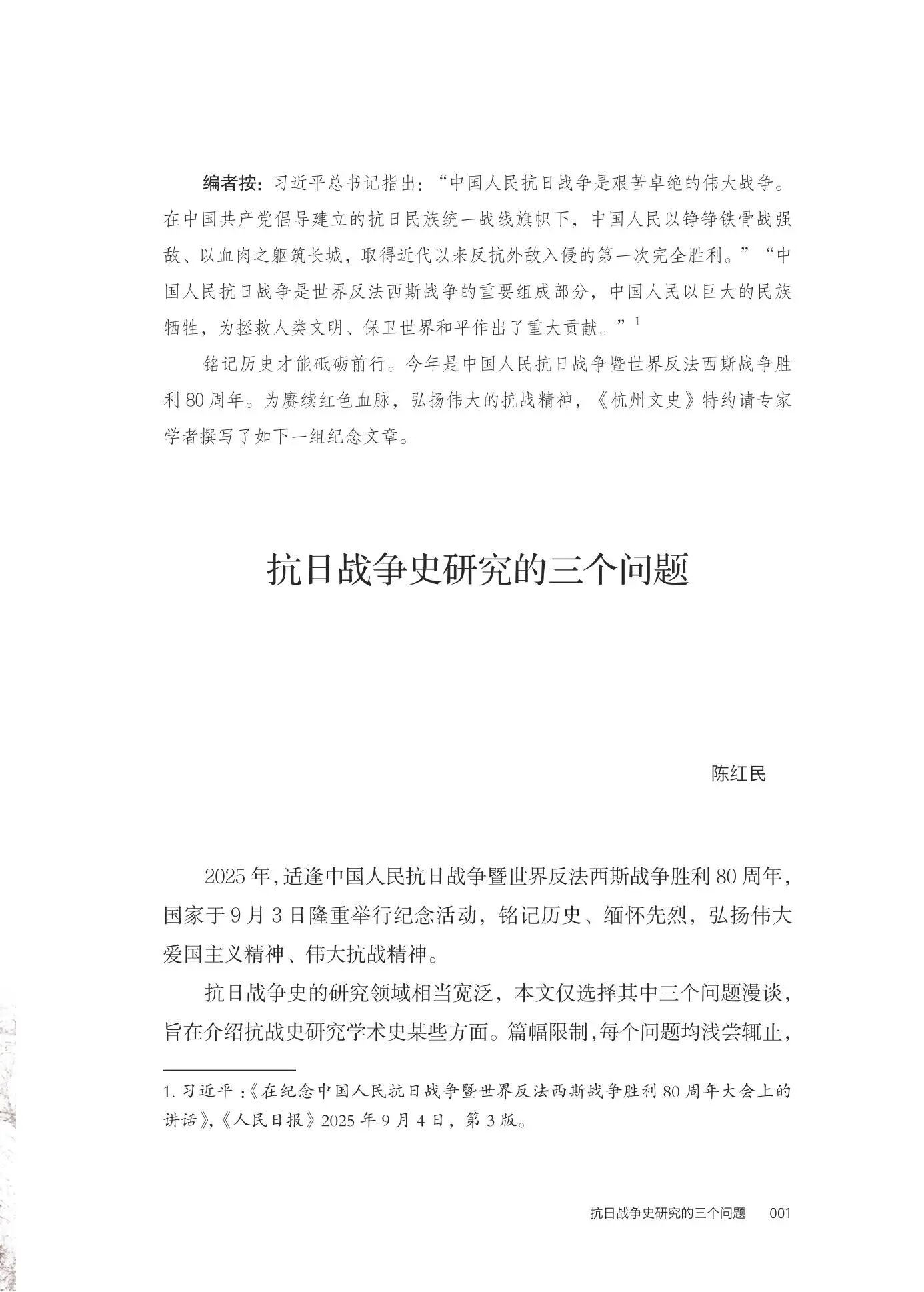 抗日战争史研究的三个问题 陈红民 /001 回望浙江抗战岁月中的三件大事 吴义全 /014 报刊与档案中的萧山抗战实录 王锦涛 /028 抗战胜利杭州光复白描 何扬鸣 范芸芸 /036