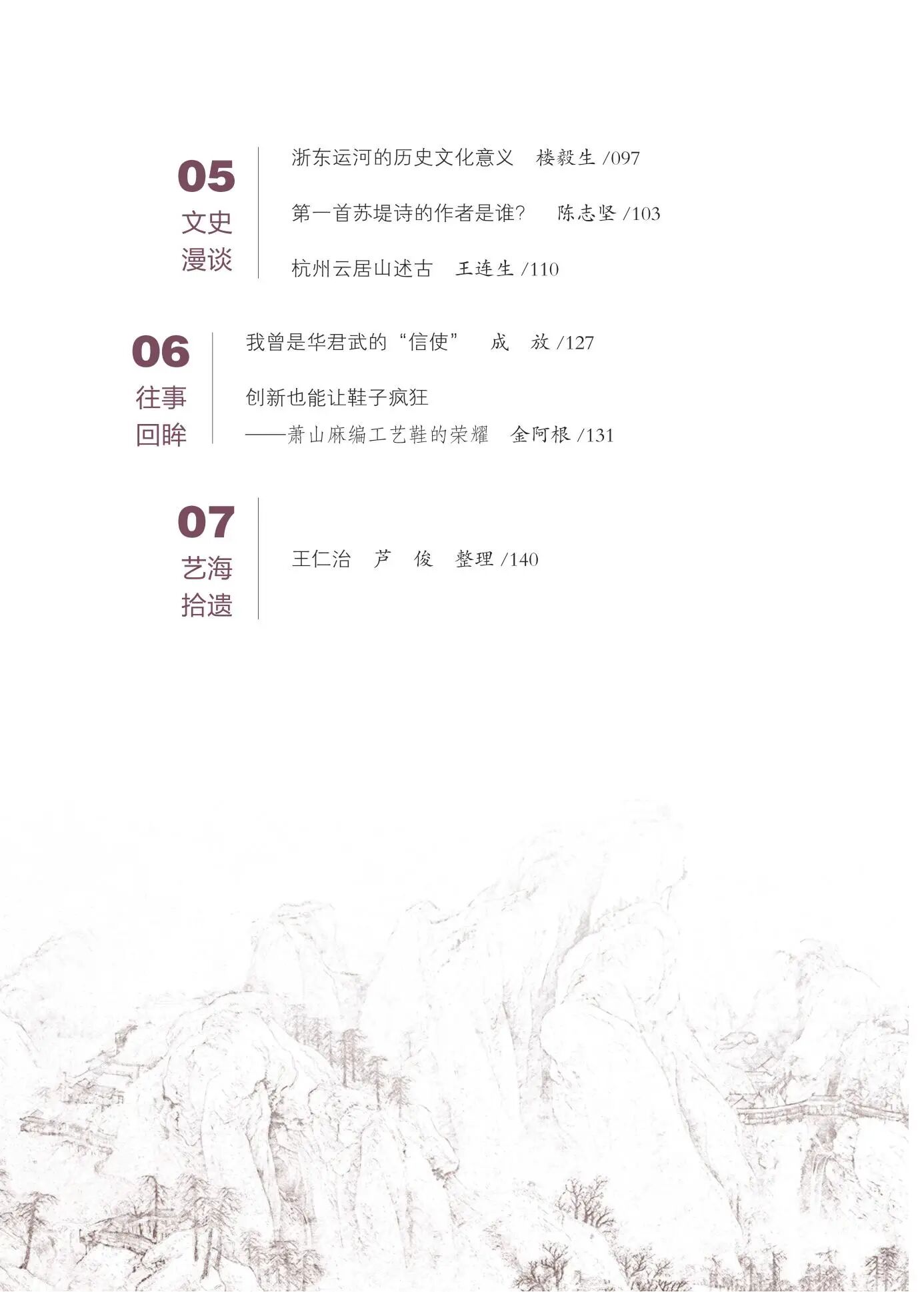 05 文史漫谈 浙东运河的历史文化意义 楼毅生 /097 第一首苏堤诗的作者是谁? 陈志坚 /103 杭州云居山述古 王连生 /110