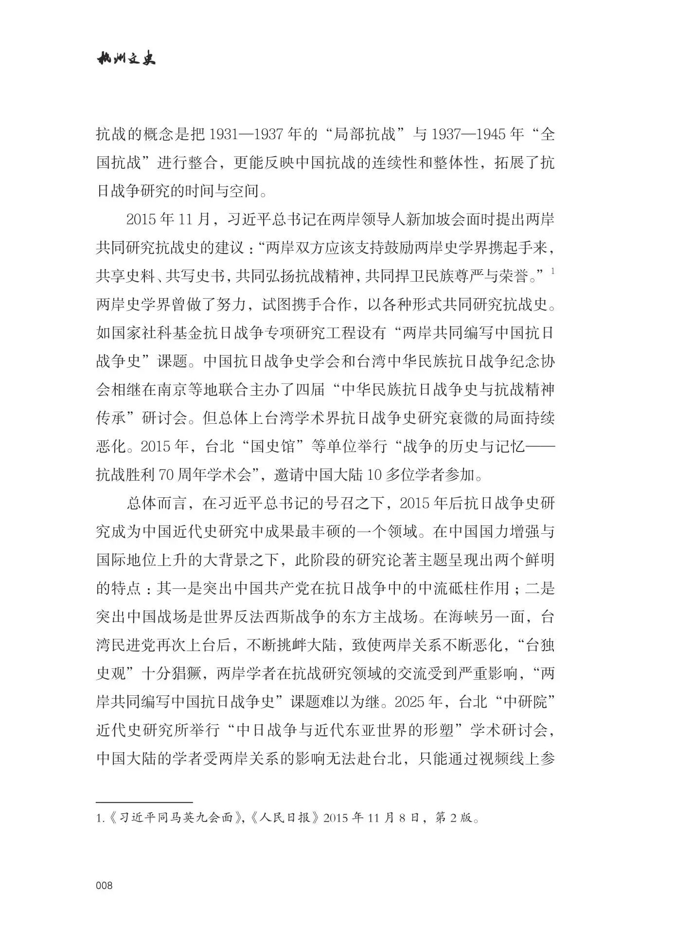 抗日战争史研究的三个问题 陈红民 /001 回望浙江抗战岁月中的三件大事 吴义全 /014 报刊与档案中的萧山抗战实录 王锦涛 /028 抗战胜利杭州光复白描 何扬鸣 范芸芸 /036