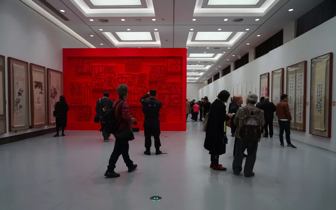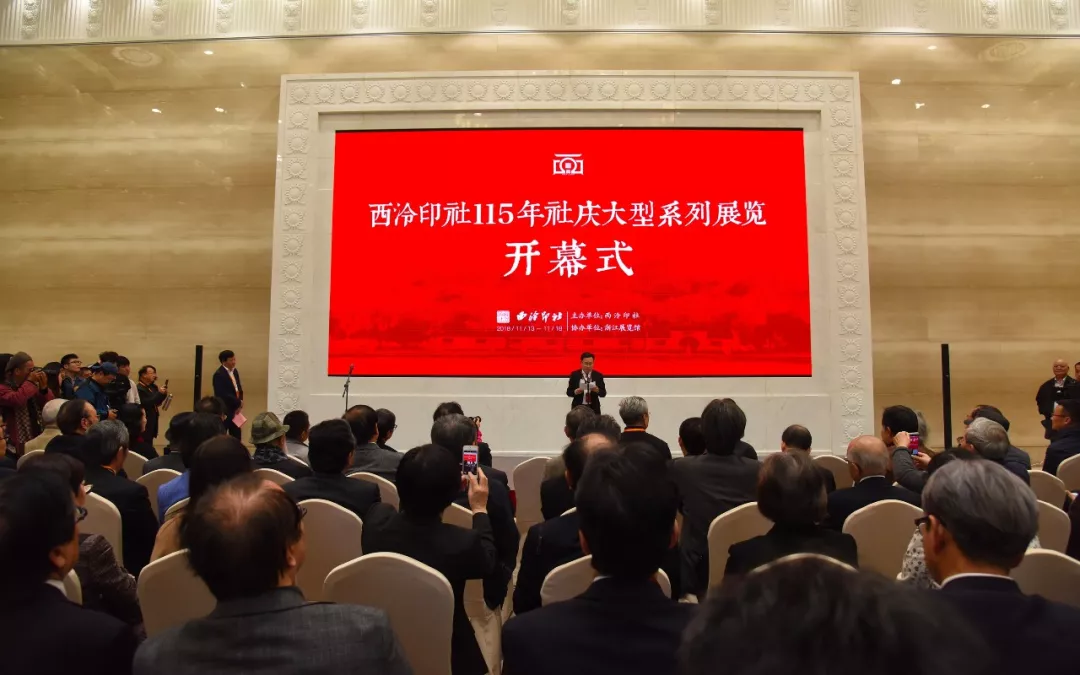 下午,“百年西泠·与时为新”西泠印社115年社庆大型系列展览在浙江展览馆举行。市委常委、宣传部部长戚哮虎到场讲话并宣布展览开幕,开幕式由市委宣传部常务副部长、西泠印社党委书记、西泠印社副社长、社委会主任龚志南主持,韩天衡副社长致开幕辞。