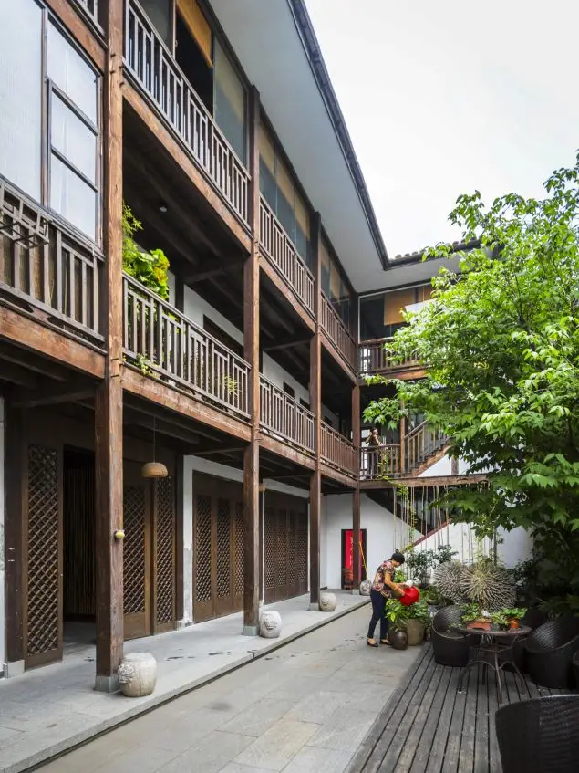 白墙黛瓦,木质栏杆的通透走廊,红漆车木楼梯……说起杭州的老房子,比胜庙巷4号建筑不得不提。比胜庙巷4号建筑位于上城区西湖大道与比胜庙巷交叉处,建于上世纪初,建筑坐北朝南,共三层,为砖木结构院落式建筑,总建筑面积770余平方米。整幢建筑在传统民居的基础上结合了近代厂房、办公建筑的功能布局,风格独具。