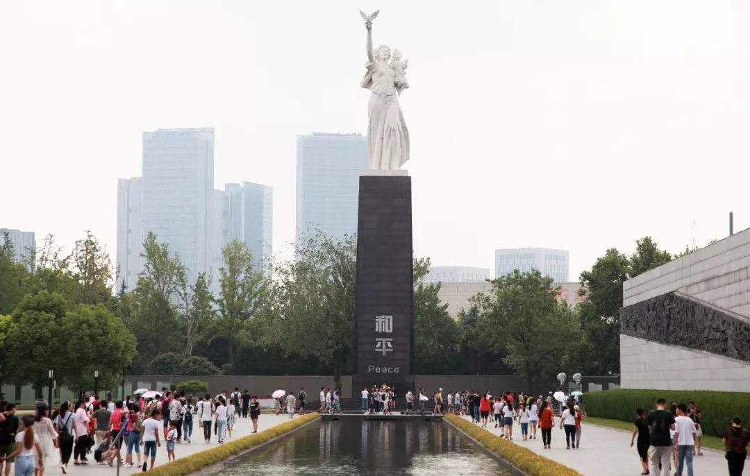△侵华日军南京大屠杀遇难同胞纪念馆的和平广场上,高高耸立着《和平女神》雕塑。