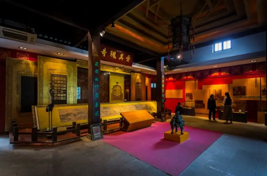 修缮后的龙井蒋宅,被用作博物馆——乾隆兴茶文化陈列室。在保护历史建筑的同时,展示西湖边厚重的茶文化,让游客感受历史的熏陶,品味可看可赏的文化价值和韵味。如今来到龙井蒋宅,缓缓踱步,参观陈列室,我们不仅可以看到按1∶1比例复制的乾隆南巡(杭州部分)和反映乾隆南巡的《策马图》《法驾卤布》等清朝宫廷画,还可以看到清朝乾隆御用陶瓷仿制品、御墨复制品、乾隆御批奏折复制品以及反映龙井茶文化的丰富展品,是市民和游客了解龙井茶文化的好去处。