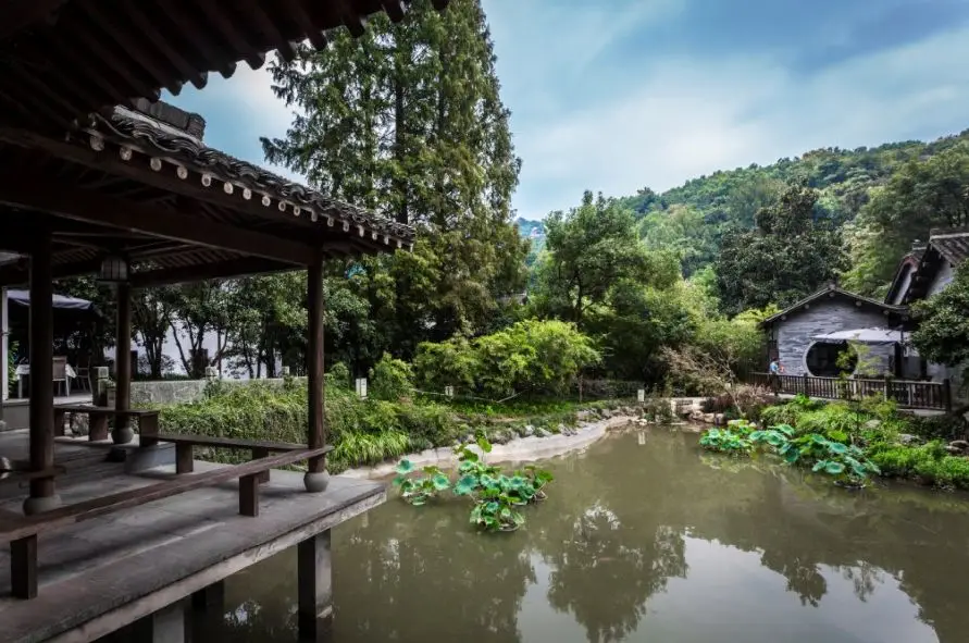 抗战前,为避战乱,蒋兰平筹款在龙井凤篁岭建造了此座西式别墅,故名蒋宅。小院紧邻“龙井八景”之一的“过溪亭”。相传清朝乾隆皇帝六下江南,遍游杭州上下天竺、龙井、云栖等地,四次到龙井观看茶叶采制,品茶赋诗,并在龙井寺御题“龙井八景”,还撰写龙井茶歌。解放后,朱德元帅和邓颖超女士路过龙井“过溪亭”时,曾到别墅内小憩赏花。