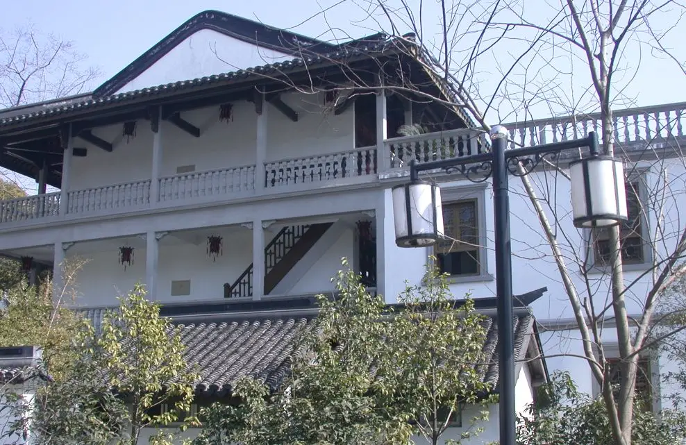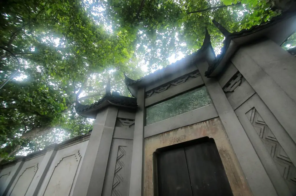 沿着北山街向西,一路白墙黑瓦,行至“王庄”再往前会发现,原本低矮的白墙一下子变得高大。眼前这幢气派的建筑就是“菩提精舍”。菩提精舍位于西湖风景名胜区北山街44—49号,建于上世纪20年代,建筑共两进,前一进为砖木结构歇山顶传统建筑,后一进是具有中西合璧风格的砖木结构合院式建筑。沿北山街,精致的门楼高6米左右,石条石板,飞檐翘角,上书“菩提精舍”四个大字;围墙一侧镶嵌着一块一米多高的界碑,雕刻有“菩提精舍界”字样,不愧为杭州现存民宅中最漂亮最气派的门楼和界碑。