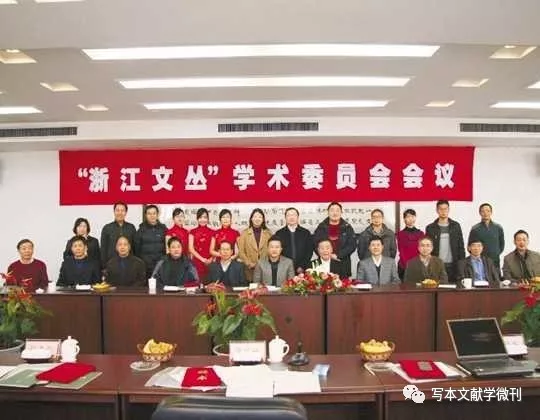 2011年12月24日,“浙江文丛”召开第一次学术委员会 这似乎是一个刻意的安排。7年间,“浙江文丛”项目历任三任社长,胡小罕、杨林海、寿勤泽,当这500册皇皇巨著摆在会场时,他们被安排坐在了一柜子丛书正对面。