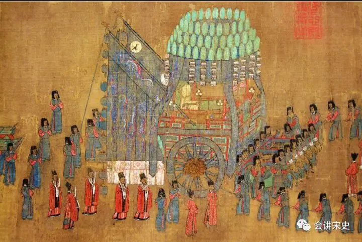 儘管大禮之前時常要拆遷所經道路兩旁的房屋,以確保車輅、鹵簿順利通過,實際上南宋鹵簿的規模小於北宋。紹興十三年 (1143) 的南郊鹵簿有一萬一千二百二十二人,紹興十六年,「始增捧日、奉宸隊,合一萬五千五十人」,[78]達到了南宋南郊鹵簿規模的頂峰,但是仍然少於北宋天聖六年 (1028) 後的南郊鹵簿人數。紹興十六年至二十八年間,南郊鹵簿規模保持不變。孝宗於隆興二年(1164) 南郊親祭前下旨:「除事神儀物、諸軍賞給依舊制外,其乘輿服御及中外支費並從省約。」於是,南郊鹵簿在紹興二十八年的基礎上減半,也就是六千八百八十九人。[79]乾道六年 (1170) 重新使用金輅、象輅、革輅、木輅和大輦後,鹵簿人數並未發生變化:「乾道六年之郊,雖仍備五輅、大安輦、六象,而人數則如舊焉。自後,終宋之世,雖微有因革,大抵皆如乾道六年之制。」[80]明堂鹵簿小於南郊鹵簿,紹興三十一年高宗親享明堂時,在紹興二十八年南郊鹵簿的基礎上減去三分之一,達到一萬一百四十人。[81]南郊鹵簿減少後,明堂鹵簿的規模亦有縮小,《宋史•儀衛志》:「若明堂,則四輅、大安輦皆省,止用三千三百十九人。」[82]即便如此,對禮儀隊伍來說,所經道路也不寬敞,更何況官民的侵街現象依然嚴重。例如,淳熙三年 (1176) 十二月,孝宗下詔:「臨安府都亭驛至嘉會門裏一帶,居民舊來侵佔官路,接造浮屋,近緣郊祀大禮拆去,旋復搭蓋。如應日前界至,且聽依舊;其今次侵展及官路大段窄狹去處,日下拆截。其餘似此侵佔去處,令本府相度,開具以聞。」[83]看來,皇帝南郊親祭前,仍然需要經常性地採取措施,以解除侵街現象對大禮尤其是車輅、鹵簿的干擾。