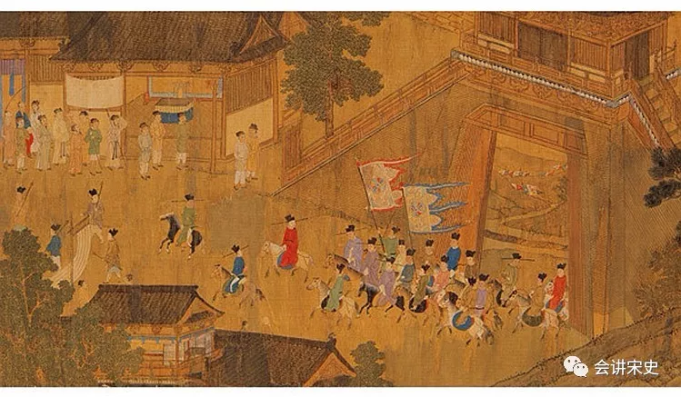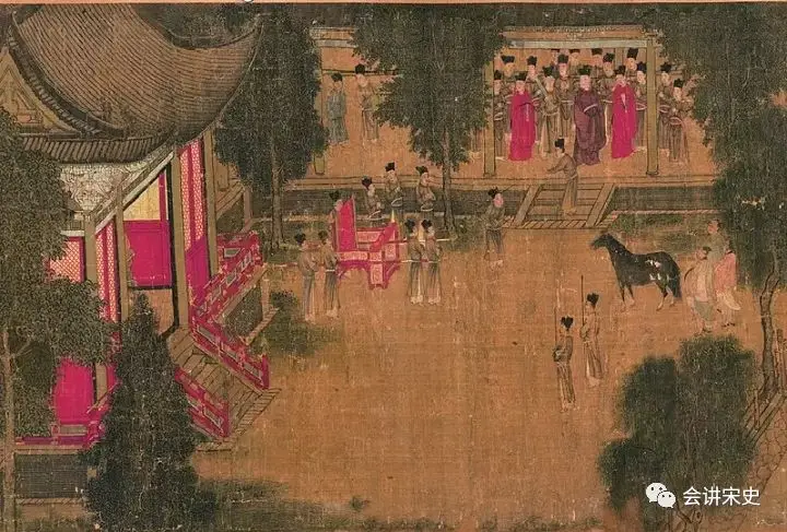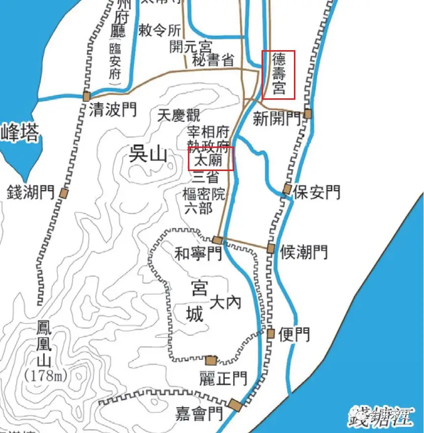 在太上皇並未退出政治舞臺的情形下,有些儀式不僅在大內舉行,還要延伸於北宮,和寧門在禮儀隊伍的移動中起著重要作用。乾道七年 (1171) 正旦沒有舉行元會禮儀,宰相率領文武官員從麗正門入宮後,只是在文德殿拜表稱賀,接著「出和寧門,徑赴德壽宮立班」,與孝宗一起向高宗行起居禮。[45]乾道九年十二月,禮部、太常寺上奏:「來年正旦稱賀,所有合趁赴官並應奉人等,欲乞入麗正門,出和寧門,徑赴德壽宮。」這一提議在淳熙元年 (1174) 的正旦朝賀中得到了實行,官員由麗正門入宮,向孝宗稱賀後,在孝宗的率領下,從和寧門出宮,前往德壽宮向高宗進賀。淳熙元年九、十月間,朝廷討論了將來舉行冬至朝賀的相關事宜,仍然堅持了「入麗正門,出和寧門,徑赴德壽宮」的制度。[46]在這些場合,從麗正門進入是為了體現其宮城正門的地位,經和寧門出宮則是出於方便的考慮。