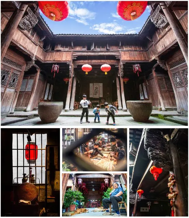 青石台阶,雕花窗。各式精致甜点,以浆果香草点缀,空气中弥漫着浓浓的咖啡香……这里就是如今的怀荆堂。怀荆堂位于桐庐县江南镇深澳村老街,建于明末清初,由一主屋和南北两抱屋组成,坐西朝东,占地面积440平方米,砖木结构,双坡硬山顶。主屋为典型的“前店后宅”建筑,五间三进楼房。