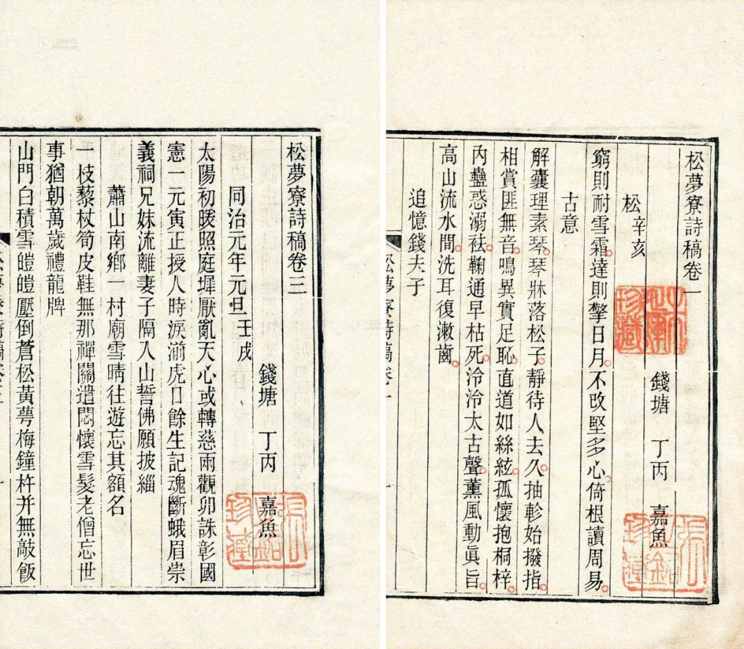 丁氏兄弟爱书和搜集藏书的精神亦有许多感人之处。据胡凤丹《嘉惠堂藏书目·序》:丁氏兄弟继其祖丁国典、其父丁英的事业,苦心经营,“雪钞风校,益其不足,几将肩随振绮。若瞿氏清吟阁、劳氏丹铅精舍相辉映者也”。后“慨振绮诸家所藏渺不可得,即天一范氏,胜国所遗,合族所守,亦荡焉渺焉,念斯文坠地之厄,发覆篑为山之思,以阁目为本,以附存为翼,节食缩衣,朝蓄夕求,远自京师,近逾吴越,外及海国,或购或钞,随得随校,积二十年,聚八万卷,视阁目几及九成,较楼额已逾十倍”。