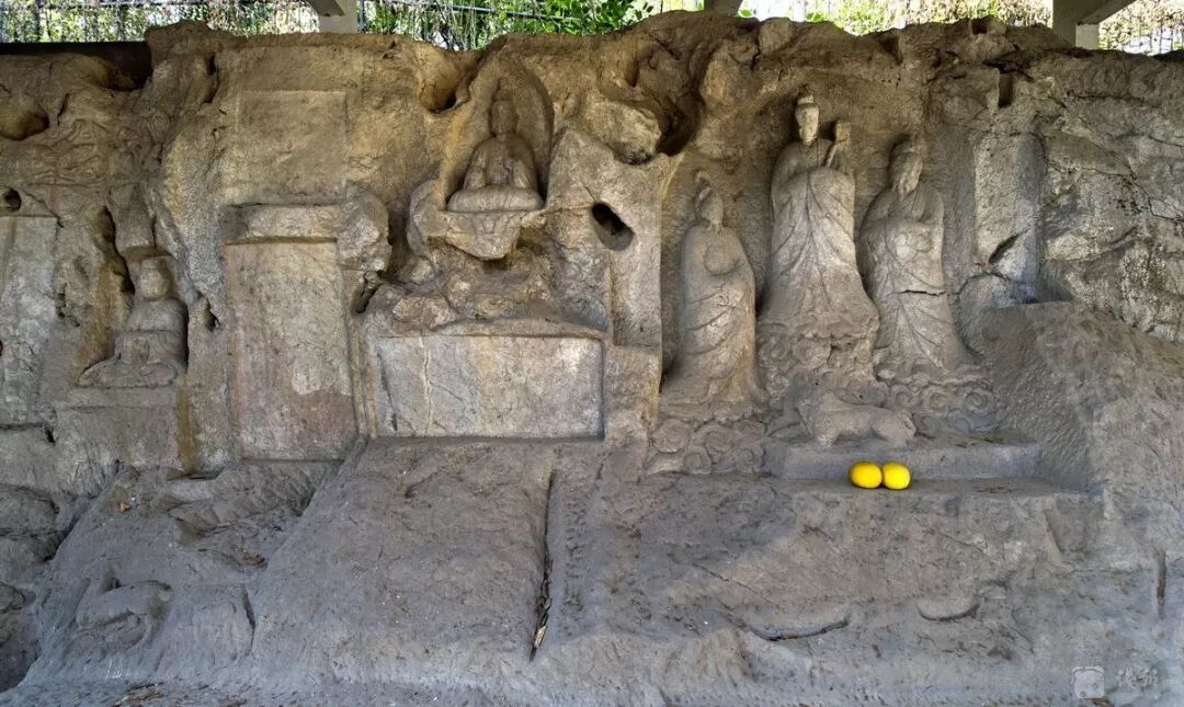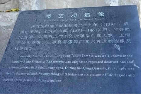 通玄观造像,位于太庙巷七宝山东麓,紫阳小学后山的崖壁上,这是杭州现存唯一一处有确切纪年的南宋道教造像。由于时代的变迁,造像风化严重,但从模糊的轮廓线条中我们依然可以看到其庄严之态。