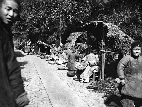 迈耶/摄 1906年,杭州,路边的穷苦人。