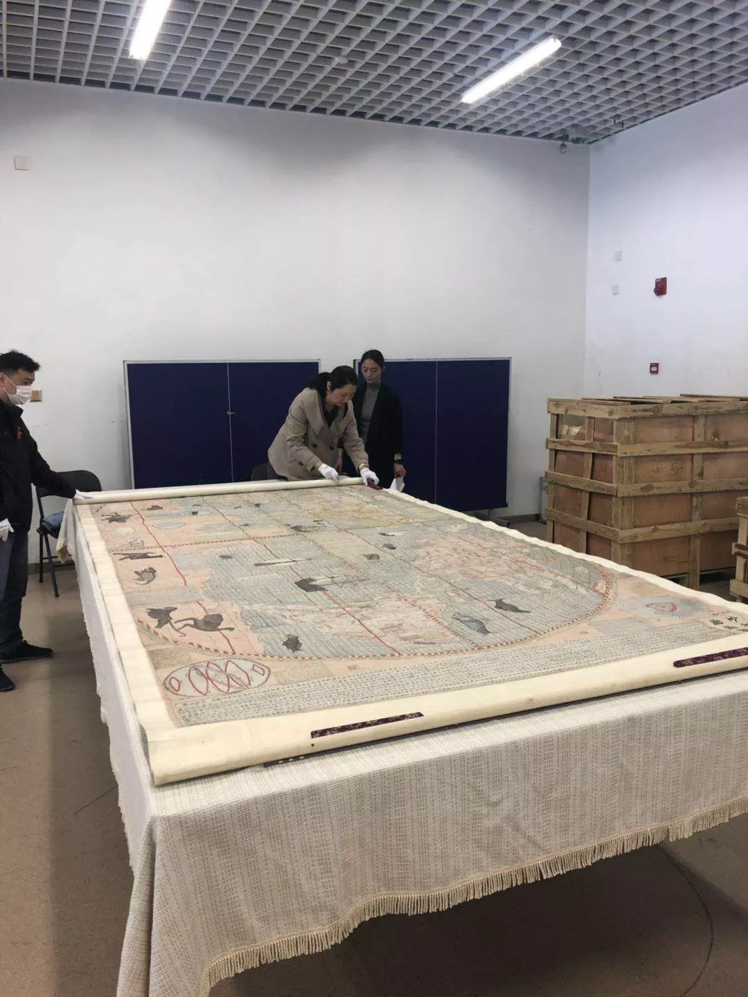 这幅珍贵的世界地图有着不同寻常的来历。民国十一年,北京琉璃厂悦古斋从地摊上购得一套《坤舆万国全图》,据专家考证,该图为清宫旧物,因清帝逊位时的动荡而流出宫外。当时一位身处北京的外国人得知此情况后,欲出资购入运往国外,并且已经初步达成协议。消息被商务印书馆的经理孙伯恒得知后,立即报知了当时的北平历史博物馆筹备处。时任馆长的裘善元先生赶紧派人与悦古斋磋商,最终以重金购回,入藏北平历史博物馆。“九·一八”事变后,为确保文物的安全,1936年,北平历史博物馆并入地处南京的中央博物院筹备处。全国解放后,前中央博物院更名为国立南京博物院,这幅珍贵的世界地图遂一直由南京博物院珍藏。