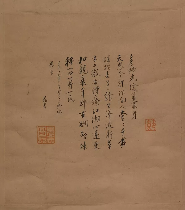 除了这张拓片上钤盖的“鹿翁”之外,杨敬安同批收藏中,尚有一件诗轴,行书“乞病纪恩诗”,这是梁鼎芬光绪三十三年辞官时写的一首名诗(“多病光阴负罪身,天恩今许作闲人”),这首诗他曾多次书写,这件作品上则钤盖了“见鹿亭长”白文方印,算是他与当阳玉泉山的又一见证——就以上数种材料,似已足证梁鼎芬养病是在湖北当阳的玉泉山,而非杭州的玉泉山。就在下结论之时,偶翻去年出版的《曹元弼友朋书札》(崔燕南整理,上海人民出版社2018年版),却发现了“实锤”,马贞榆(季立)致曹元弼四十通信札,其第九通云: