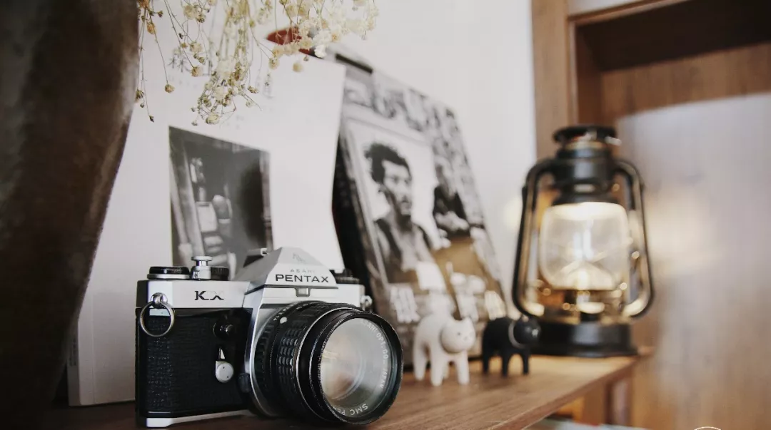 吧台和后厨划分的井然有序,桌椅、书柜皆是黑胡桃木,僻静角落里老板娘亲手插的花,满墙的黑白胶片...布局看似简单却有着满满的生活气息。