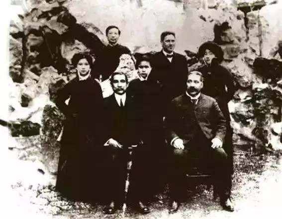 ▲1912年4月6日,孙中山和亲友与哈同在上海哈同花园合影