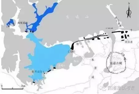 不仅如此,早在20世纪90年代,人们就发现良渚遗址的西北侧的“塘山”是一条东西向的土垣,全长约5公里,宽度约在50—70米,高约3—5米不等。起初,人们认为塘山是一处良渚先民人工修筑的防洪堤,但一直无法找到围合结构。直到2009年9月中旬,有群众举报在良渚遗址群西北10千米左右的彭公村岗公岭有人“盗墓”,现场暴露大量青膏泥,这才意外发现了水坝线索,通过勘探共确认了分布于谷口位置的6个高坝坝体,共分东西两组。水坝堆筑的青泥以草包裹的形式垒筑而成,经北京大学碳14实验室测年确定为良渚时期。