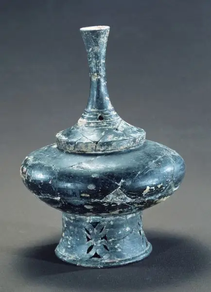 良渚文化的黑陶高柄盖罐,制作于公元前3100年至前2200年间,出土于上海青浦县(今青浦区)福泉山,现藏上海博物馆。黑陶为良渚文化中典型器物之一,但明显区别于山东龙山文化中的蛋壳黑陶,成为确认良渚文化土著性和独特性的标志之一