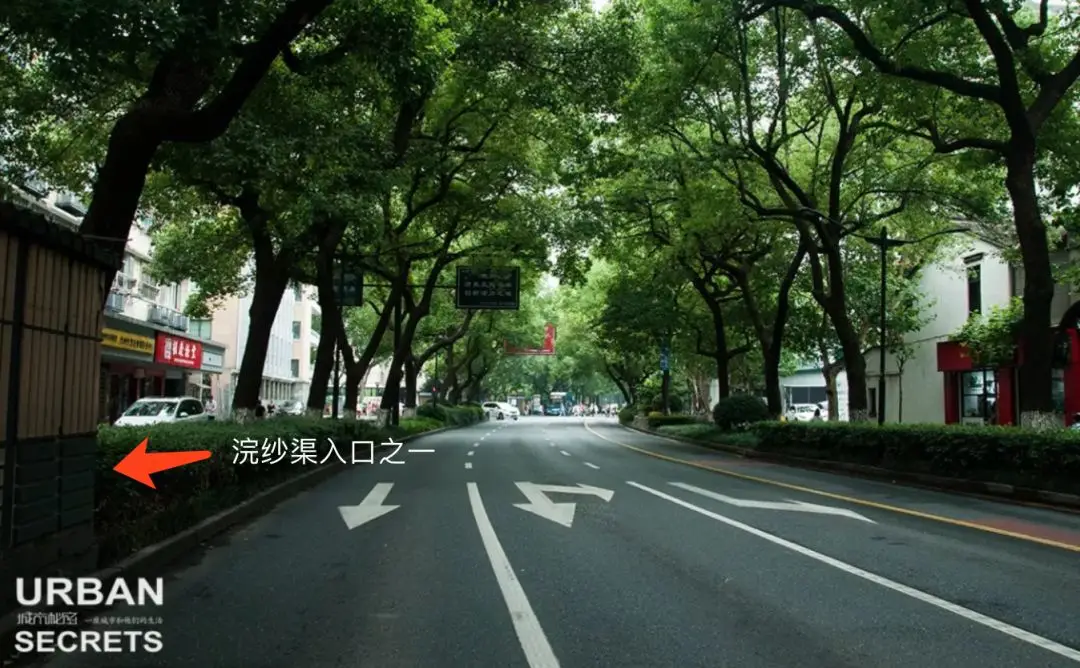 ▲浣纱路仁和路口,绿化带上即有一个入口。目前上城区可进入浣纱渠的口子有仁和路口、开元路口、齐心路口三个入口,市一医院后门口也有一个,但是长期锁着几乎不开。