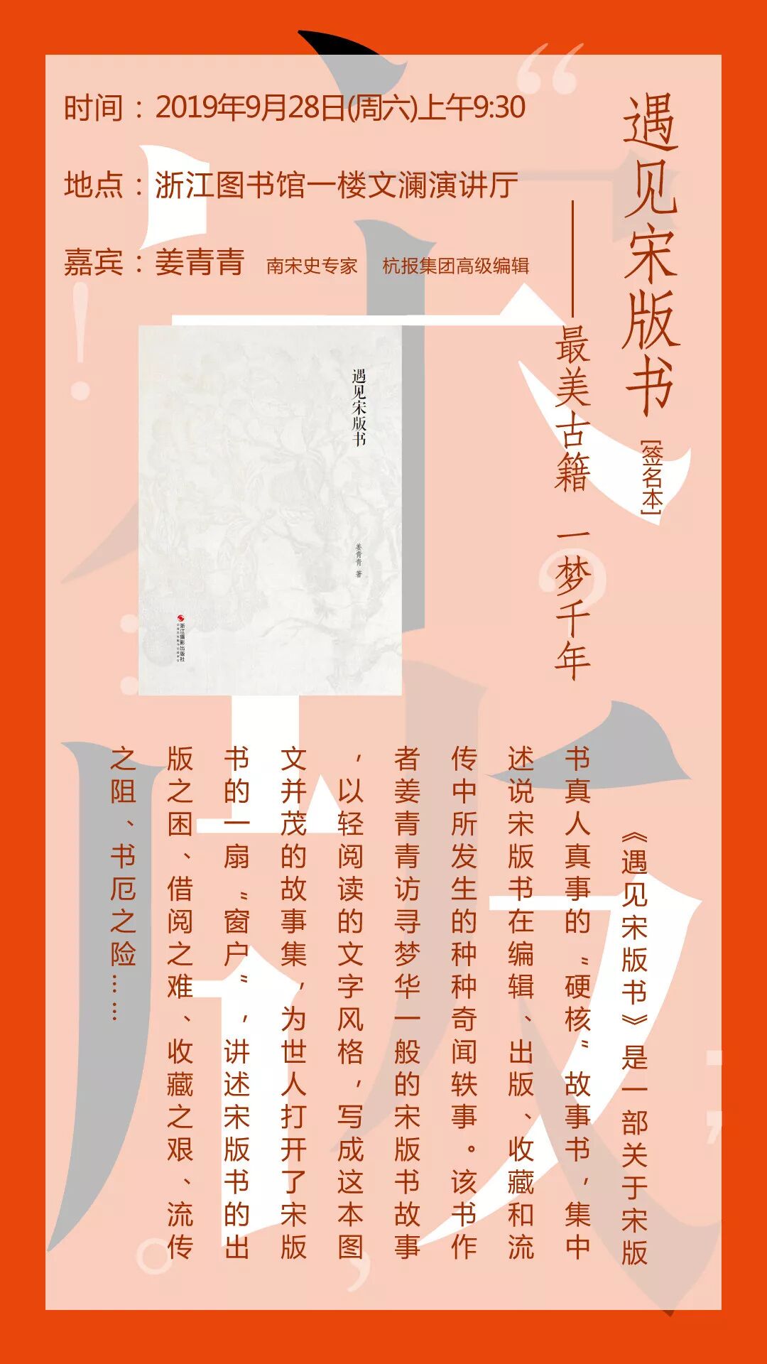 时间:2019年9月28日 上午9:30 地点:浙江图书馆一楼文澜演讲厅 嘉宾:姜青青:南宋史专家、杭报集团高级编辑