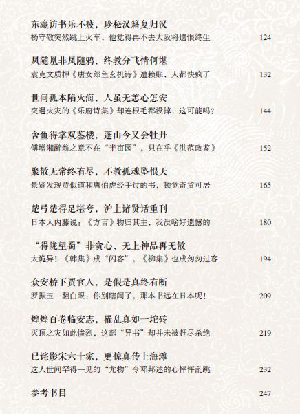 写宋版书的火灾奇遇: “文友堂”突然发生火灾,里里外外在顷刻间变为灰烬,片纸不存。消息传来,傅增湘惊呆了,完了!一切都完了!心里一阵悲凉,一阵悔恨,又一阵叹息。这次托书给“文友堂”原本是为了替书续命,却不料适得其反,让它一命呜呼!他心急如焚,赶紧跑到琉璃厂,向店主魏笙甫表示慰问,却又强装达观,绝口不提他的那部《乐府诗集》。但魏笙甫却说,这部《乐府诗集》全须全尾,一根毫毛都没掉,好好的啥事没有。傅增湘简直不相信自己的耳朵。