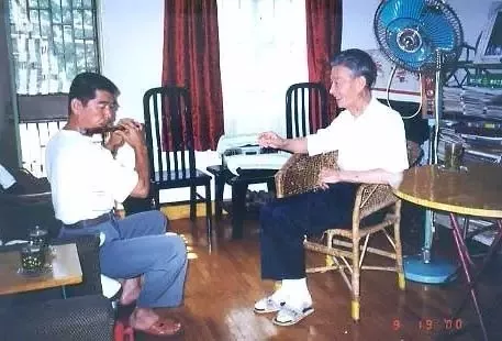 山川宗玄率团在杭州期间,他们向中方提出能否请一位中国的尺八修习者一起交流印证,可是,这的要求可难倒了杭州的接待方。因为当时整个杭州居然也找不到一个会吹尺八的人,他们何曾想到,中国在唐宋之后,尺八也销声匿迹几百年了。 在护国寺,山川宗玄的神情是那么落寞啊。 日本朝拜团从护国仁王禅寺回国后,开启了中日尺八交流的新纪元。 2000年1月,曾跟团朝拜的日本尺八琴古流传人和田哲夫托人找到孙以诚先生,转达了他要在杭州免费义务教授尺八的想法。 “还”,是别人的态度,“传承”,却应该是我们自己责无旁贷的义务。 在杭州,第一期5名学员在和田的教授下,《虚铎》这首曲子,终于回到了他的故乡。 差不多时间,日本尺八对山流传人平八郎经兴国寺方丈山川介绍,到了中国后,与孙以诚先生在杭州会面。 平八郎在孙以诚的陪同下,先是去了护国仁王禅寺,在大殿内,平八郎连续吹奏了明暗宗的“三虚灵”曲,《虚铃》《虚空》《雾海箎》等。吹完曲子后,他在寺院默默祷告,虔诚至极。 在孙以诚先生的安排下,平八郎还见到了赵松庭这位当年已76岁的老笛师,拜在他门下,学习吹管乐器的循环换气法。