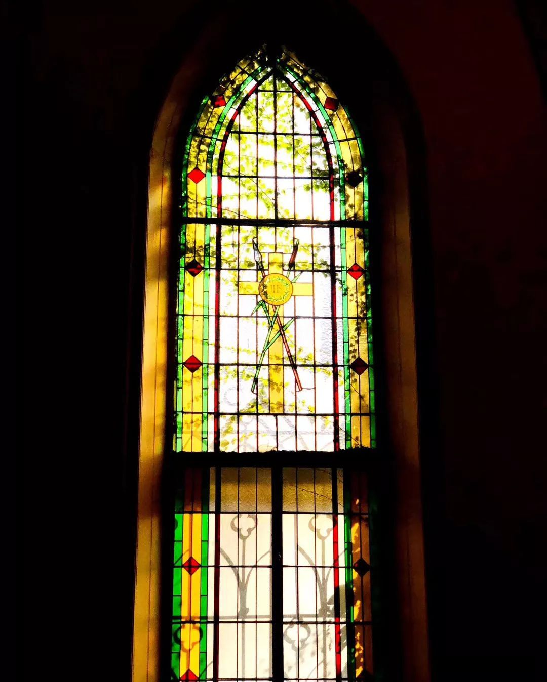 ▲教堂内的彩绘玻璃窗