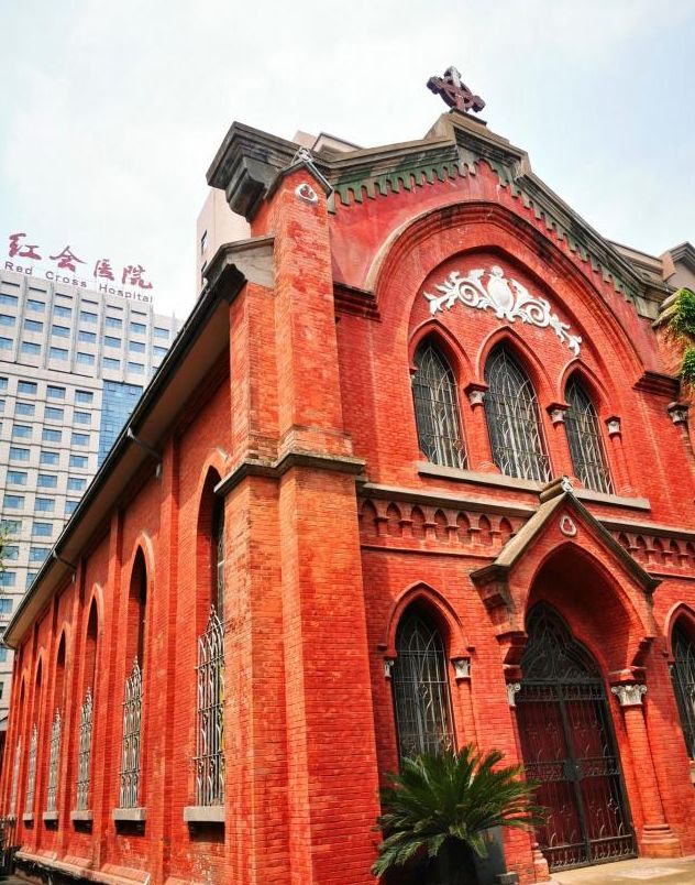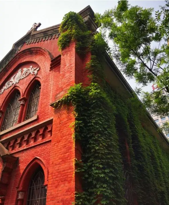 它的建材来自澳大利亚和欧洲,红色的砖墙、彩绘的玻璃窗、尖顶的桃形拱门、袒露的罗马亭柱,每一处都风格鲜明而考究,具有较高的建筑艺术及历史价值。它与四周毗邻的红砖楼房相得益彰,饱含丰富的历史内涵和文化底蕴。