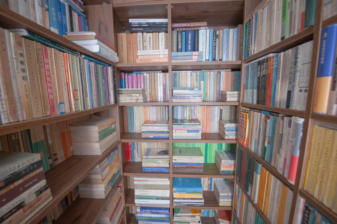 张帆曾经的住所,书籍俯仰皆拾 工作后,张帆拥有了颇具规模的藏书,但严格意义来说,他藏书的区域并不能称作是一间“书房”,因为这三万册藏书并不是集中于某一个房间,而是布满整个居所。 步入张帆家中,几乎看不见一般家庭常见的橱柜、壁纸等装饰。从玄关到墙壁,从隔断到桌案,全部都是由书架组成。种类各样、大小不一的书籍被整整齐齐地码放在书架上,从地板到天花板,像是一面斑驳却意外和谐的背景墙。
