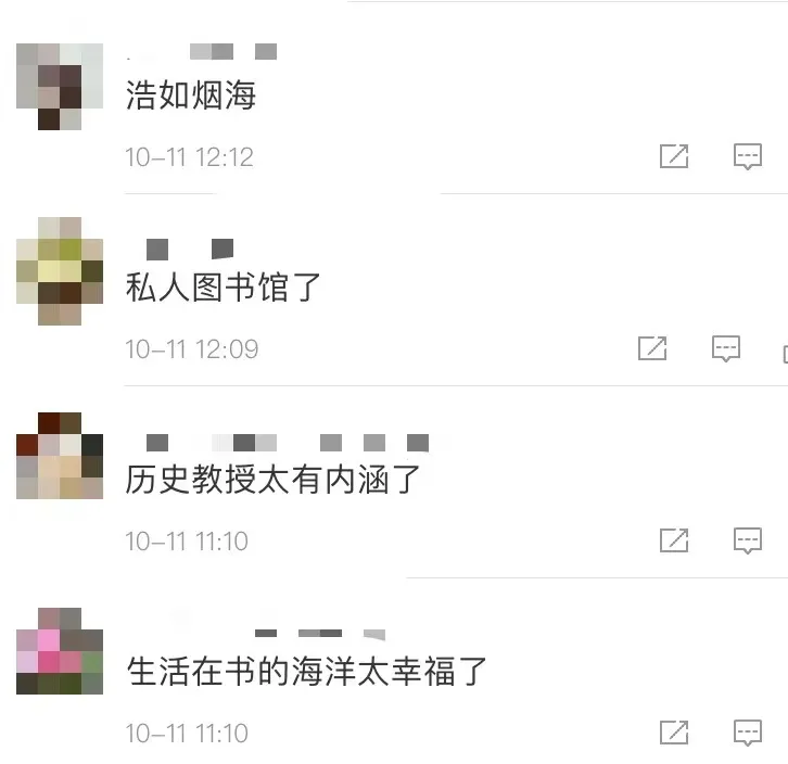 张帆如今的住所 微博网友对张帆“坐拥书城”的评论 一面面颇具历史感的书架,藏着的不仅仅是旧书,更是某种回忆。介绍到一些小时候看过的旧书,张帆总结为“怀旧报复性买书”。 “小时候书少看不到,长大了就要把小时候看过、包括看不懂只翻过几页以及听说过但看不到的书都买回来,现在其实也没什么用,但买回来放着就是安心。我买书就像集邮一样,如果我买了其中一本,那我一定想办法把这一套全部买齐。”