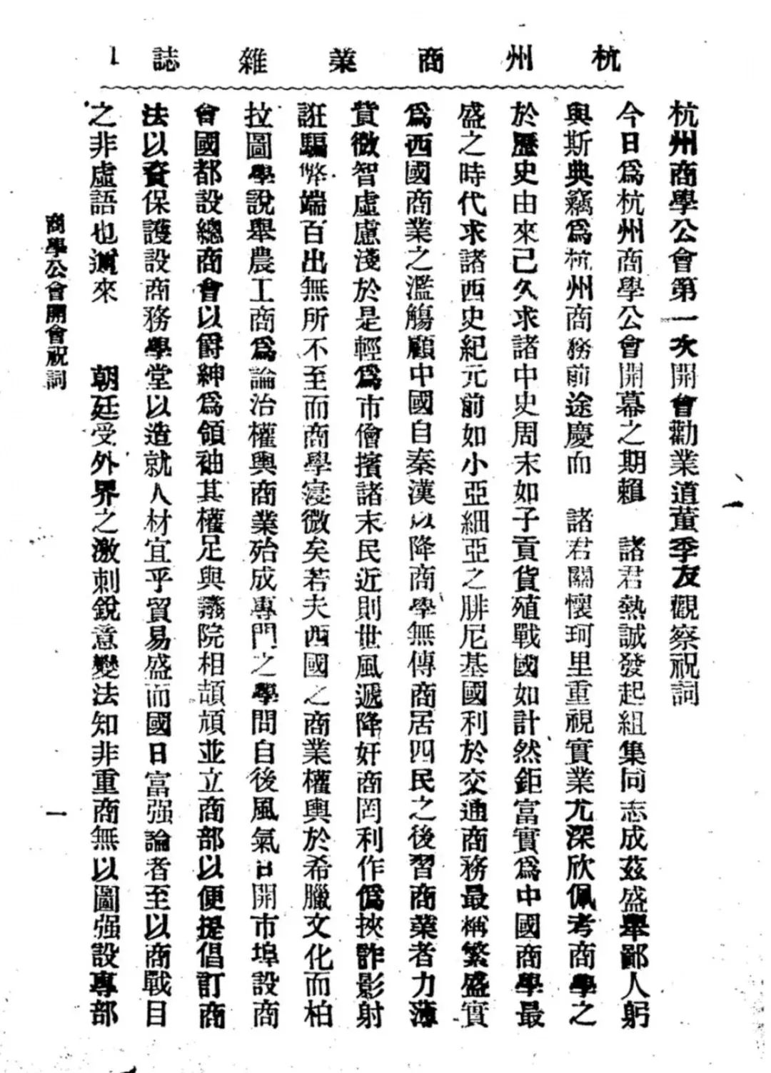 《杭州商学公会第一次开会劝业道董季友观察祝词》