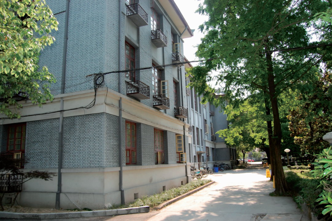 东楼西立面 浙江省团校历史建筑位于西湖区西溪街道文教社区中部偏西、文二路 188 号院内,西临教工路,南临文二路中段。浙江省团校正式成立于 1950 年,是中国新民主主义青年团浙江省工作委员会领导的为团组织培训基层领导骨干的专门学校,早期借用杭州里西湖的菩提精舍和灵隐上天竺寺庙破旧的附属用房作临时校舍。1954 年经中共浙江省委批准,团校新校舍得以在今址兴建,当时校区占地 45.5 亩,建筑面积共 6059 平方米,建设工程于 1955 年 2 月正式开工。随着时间的推移和学校的发展,校舍及设施或重建、或新建,竣工于 1955 年的四幢建筑则几经修缮留存至今。