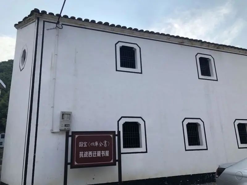 ▲曾秘藏《四库全书》的老宅(修缮后) 渔山江边码头(当时在乌龟山,现渔山村沙头自然村)至五岭村石马自然村有15华里,数百挑夫,两人肩抬一箱,阁书与善本共228箱,于8月5日夜全部藏入赵宅。从此,浙江图书馆史美诚、毛春翔、叶守荣、夏定域等工作人员食宿均在赵坤良家,受到热情款待。