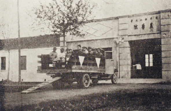 农学院教职员乘校车抵达位于笕桥的农学院 一