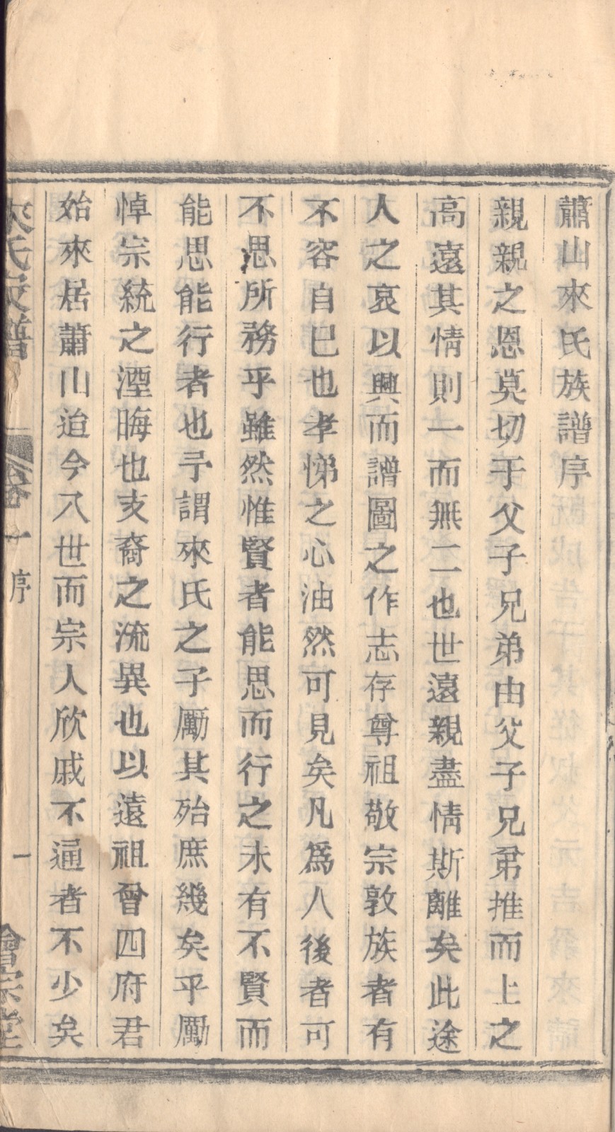 《萧山来氏家谱》共60册,其中59卷保存在杭州市萧山区档案馆,是该馆的馆藏精品。来氏家谱自明朝永乐十三年(1415)至民国十一年(1922),历经四次编纂。现存的馆藏《萧山来氏家谱》为民国十一年(1922)的重修版,它记载了萧山长河来氏家族兴旺发展的历史,共约230万字。家谱共分为两大部分,第一部分为卷首,共34篇,第二部分为家谱主要内容,共11卷。《萧山来氏家谱》共60册,其中59卷保存在杭州市萧山区档案馆,是该馆的馆藏精品。来氏家谱自明朝永乐十三年(1415)至民国十一年(1922),历经四次编纂。现存的馆藏《萧山来氏家谱》为民国十一年(1922)的重修版,它记载了萧山长河来氏家族兴旺发展的历史,共约230万字。家谱共分为两大部分,第一部分为卷首,共34篇,第二部分为家谱主要内容,共11卷。 《萧山来氏家谱》最初收藏于民间,在“文化大革命” 期间意外地保存了下来。1978年,时任长河镇文书的何金海意外发现该家谱,随即珍藏起来。1988年,时任长河镇镇长的邱宝根与何金海一同将《萧山来氏家谱》捐赠给了当时的萧山市档案馆。 家谱开本页面宽16.5厘米,高27厘米,线装书;封面于上书口内沿印书签;内页面双框单栏,页9行,版心中上处单鱼尾,其上署谱名,其下署卷号内容,底部署页码及堂号。 萧山来氏垂史900多年,簪缨相继,门庭显赫。据家谱记载,自宋代以来入选科名的达367人。长河民间流传着“三石六斗芝麻官”的说法,形容历史上来氏官员之多,犹如芝麻一般。萧山来氏家族重视儒家教育,崇尚礼教文化,注重子弟教育培养,规定来姓子弟可免费入学。故来氏家族历来人才辈出,当代名家来新夏、国产航母舰长来奕军等,均出自“萧山来氏”。来氏先祖注重家风家训,以家规训诫规劝族人“顺族睦家”“谨言慎行”“勿绝书香”“书则必读,田则必耕”“序长幼”“别尊卑”;又以“节孝”列卷,设“节烈祠”,记述节烈事迹,宣扬贞烈节孝。《萧山来氏家谱》不仅是一部“家族档案”,也是一部“地方历史”,铭刻着时代变迁和地方发展的特殊印记,串起了“萧山来氏”的前世今生。