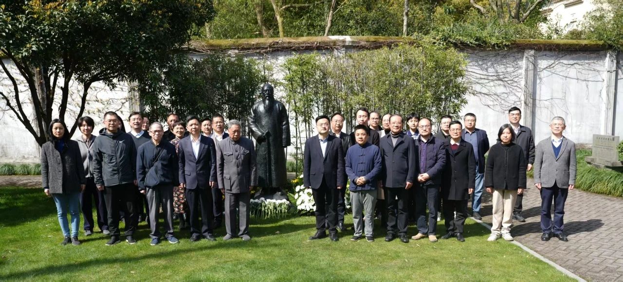 与会人员向马一浮雕像敬献鲜花并合影留念 为深入学习贯彻习近平文化思想,更好担负起新时代的文化使命,助推习近平新时代中国特色社会主义思想溯源铸魂传播,省文史馆积极谋划溯源中华优秀传统文化活动,举办了此次马一浮当代价值研究座谈会。面向新时代新思想、新话语、新机制、新形式,深入挖掘马一浮学术思想,汲取文化自信的力量,是省文史馆推动中华优秀传统文化基因与时代发展相适应、与现代社会相协调的积极探索,是对省委王浩书记提出的“在赓续历史文脉上实现新提升”的积极回应,是对国务院参事室(中央文史研究馆)要求的“当好优秀传统文化传承者”的积极践行。 省文史馆专职副馆长姜玉峰,馆员、研究员代表徐儒宗、陈锐、董平、尚佐文,馆外专家张宏敏、吴晓明、邓新文,绍兴市上虞区委宣传部部长周晓国、浙江图书馆古籍保护研究中心主任童圣江等马一浮研究协作平台成员单位代表及上虞区档案局、长塘镇有关人员参加座谈会。座谈会由省文史馆副馆长成明权主持。与会专家围绕马一浮及其国学思想进行深度阐发,对挖掘马一浮当代价值、传承创新马一浮思想等建言献策。当天,省文史馆全体工作人员、与会专家学者们还向马一浮雕像敬献鲜花,对马先生致以深切的怀念。  ”马一浮当代价值研究“座谈会现场省文史馆馆员徐儒宗说,马一浮先生的“六艺之教”充分体现了中华文化的包容性、创新性、合理性、务实性、和平性,具有充分的文化自信,在建设具有中国特色的现代化和创建人类命运共同体的伟大事业中,能起到一定指导作用。 省文史馆馆员陈锐认为,关于马一浮先生的研究,还有很多重要问题有待深入,比如马一浮思想定位、对六艺之学的评价。如果能将文献厘清、找到恰当的评价标准,能够进一步推动中国哲学史和儒学史研究。 省文史馆馆员董平提出,应清晰明确马一浮先生在中国现代学术史上的地位;更大力度地收集整理一手研究资料,适时增补重编《马一浮全集》。探索开展“马一浮先生对浙江大学的贡献”等相关问题研究,在现有马一浮研究基础上,加强与国际儒联的学术互动。 省文史馆研究员尚佐文指出,马一浮先生的影响力与其学术地位不匹配,要在文献整理、学术研究、普及推广上继续加力。宏观来看,其“直接孔孟”的思想关系到传统文化溯源;从具体学术观点看,其诗学思想有待进一步研究。 省社科院哲学所副所长张宏敏认为,当前马一浮研究协同创新的时机比较成熟。立足现有基础,依托专家力量,省文史馆应该进一步推动确立马一浮的学术定位,助力在推进中华优秀传统文化“两个结合”中巩固文化主体性。 浙江大学艺术与考古学院副研究员吴晓明表示,目前马一浮先生还有许多书法作品、诗文书信从未公开出版,文献整理与学术研究应当同步推进。可以探索将马一浮先生的作品纳入学校教育体系,进一步扩大其影响力。 杭州师范大学国学院副院长邓新文说,马一浮先生在浙大校歌中写“树我邦国,天下来同”,体现了其思想的高瞻远瞩,对中华优秀传统文化的坚定自信。传播马一浮先生的思想,应当在学术严肃性与社会普及性方面把握好分寸。 中共上虞区委常委、宣传部部长周晓国介绍了近年来上虞区以打造“马一浮文化传承地”为目标开展的一系列建设情况,积极推动马一浮思想传播,努力在山水文脉中孕育精神基因、在传承发展中构建文化矩阵、在守正创新中续写时代篇章。 浙江图书馆古籍保护研究中心主任童圣江说,马一浮先生在四川创办了复性书院,刊刻了一批文献,从他的教学中充分体现了其将学生的人格培养和文献的研读结合得非常紧密。讨论马一浮学术思想的当代价值,刻书研究也是值得深入挖掘的领域。 曾在马一浮先生家乡工作的绍兴市文史馆馆员罗兰芬,在座谈中交流了其收集整理和研究马一浮先生相关地方文献的情况,表示要进一步讲好故事,依托故居打造教研学基地。 省文史馆始终致力于马一浮研究。自2008年以来,相继举办了一系列纪念活动和学术研讨会,并编撰出版了《马一浮全集》《马一浮书法集》等书籍。2023年,值马一浮诞辰140周年,省文史馆倡导建立了马一浮研究协作平台,与浙江大学、中国美术学院、浙江图书馆、绍兴市上虞区委构建合作模式,共同开启马一浮研究时代新篇;举办了“千年国粹 一代儒宗——马一浮先生诞辰140周年纪念特展”,挖掘展呈马一浮为人、治学思想的时代内涵;召开“马一浮与中华传统文化传承创新”研讨会,推进马一浮研究跨省域协作,推动对其思想当代价值的研究阐释。由省文史馆组织编撰的《浙学大家》丛书马一浮卷,也将于今年上半年付梓出版。省文史馆马一浮研究品牌建设逐年深化,影响力和效果逐步扩大。 马一浮先生的国学观对充分认识中华文化核心价值、提升民族文化自信具有重要的借鉴意义。立足构筑新时代文史赋能新路径的目标,姜玉峰表示,省文史馆将一如既往深挖马一浮思想时代内涵,继续组织开展马一浮学术思想著作编撰,持续深化马一浮研究协作平台建设,设立省文史馆“马一浮书房”,做大做强马一浮研究文史品牌,为浙江建设“中华优秀传统文化创造性转化、创新性发展新高地”贡献文史力量。 马一浮先生曾说,“道者,天下之公器;弘道者,亦尽人与有责焉。故少数人谋之而不足