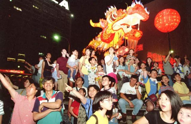 1997年7月1日晚,香港特区政府为庆祝香港回归举行万丈光芒庆回归烟花会。图为观赏烟花的香港市民。新华社发