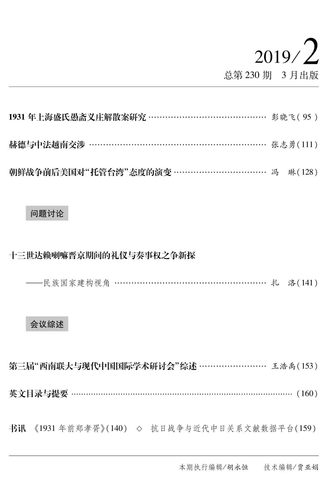 | | | | 文史动态 | | | | 《近代史研究》2019年第2期目录及内容提要 | | 来源: 近代史研究微信公众号 作者: 近代史研究编辑部 日期:2019-03-20 | | 五四前后“个人主义”兴衰史 ——兼论其与“社会主义”“团体主义”的关系 内容提要 “个人主义”是五四时期最重要的思潮之一,对于渴求个性解放和个人独立的五四青年具有巨大的影响力。但五四新文化运动之后不久,对“个人主义”的正面阐扬逐步退潮,与奉献“国家”“社会”相比,单纯追求个人独立几乎成为“自私自利”的代名词,反复遭到批判。其原因有二,一是“个人主义”与中国崇尚群体道德伦理的传统相抵触,二是一战以后社会主义思潮兴起,“个人主义”作为资本主义私有制产生的理论基础,其启蒙价值遭到严重质疑。抗战全面展开后,救亡图存的时局亦有利于“社会有机体论”和“团体主义”价值观的弘扬和传播,“个人主义”遂彻底走向没落,最终让位于具有浓厚意识形态化色彩的集体主义精神。 关键词 五四运动 个人主义 社会主义 团体主义 社会有机体论 内容提要 钱穆与五四运动的关系,受1930年代后钱穆自己关于五四的历史叙述影响较大,以至长久以来他基本是以一个五四运动的反对者的形象出现的。这经常让人忽视一个逻辑即真正的反对者需要“资格准入”。钱穆其实是在深入了解和积极参与了五四运动之后,疏离和反思了五四运动。对于这一过程,前贤多有发见,不过从目前各种新发现的钱穆早年史料出发,他与五四运动互动的一些面相,如新思想潮流怎样影响了江南地方社会?钱穆以何种方式介入了五四运动?从“看《新青年》”到“决心重温旧书”的内在理路为何?外部环境又对这种转折有何影响?这些问题均可以做更为细致的解读。 关键词 钱穆 小镇青年 五四运动 新文化 江南地方社会 作者简介 瞿骏,华东师范大学历史学系暨中国现代思想文化研究所教授 内容提要 关于杜威访华的既存研究大多在“影响—接受”的框架内展开,但这一思路忽略了杜威本人与五四时期的中国都是复杂多元的变量。杜威在华讲演,是哥伦比亚大学、各家邀请方、各级政府、媒体、听众及杜威的主观愿望和工作相互协调的结果,亦深受美国国内形势和世界局势影响。基于新出版的《杜威通信集》、地方报刊及在华英文报刊中的相关史料,从“交互经验”的角度来重新考察杜威访华事件,可以更充分地认识杜威对新文化运动及新教育改革的参与,亦可一窥新文化运动的分层、分期、分地域及最终分化的多重面向。 关键词 杜威访华 《杜威通信集》 五四 新文化运动 作者简介 彭姗姗,中国社会科学院近代史研究所助理研究员 内容提要 在太平天国统治区,特别是1860年代太平军奄有苏浙膏腴之地,之后“如蜩如螗,如沸如羹”的“民变”呈现了一道别样的历史景象。民变的抗争矛头大多指向太平天国的经济政略。广泛而频繁地引发激变四野的民众反抗,也是政治权力控制地方社会不当的直接反映。太平天国严禁集体暴动的原则是一以贯之的,在应对民变的实践上则具有以剿为主、不注重善后、过分干涉租佃事务、区分事件类型和性质等特点。民变多元复杂的社会效应对太平天国统治产生影响。首先,“高效”镇压的背后,反映了民变耗费政府财力、牵扯行政精力和分散太平军兵力的实质;其次,民心渐失,后期太平天国“人心冷淡”的现实,不仅是在军中、朝内,在民间亦是如此。更重要的是,统治区风起云涌的民变在某种程度上宣告了太平天国在社会控制层面的失败,预示着“天国”陨落的命运。 关键词 太平天国 民变 太平军 集体行动 社会控制 内容提要 在近代中国的历史进程中,绅士批判不仅是政治问题,还是一种颇为引人注目的文学现象。刘一梦的短篇小说《斗》是1920年代末革命思潮的微观反映,其原型为山东省沂水县发生的牛头税之争,与清末民初沂水县形成的三角权力结构有关。它相当典型地反映了绅权急剧扩张所造成的“绅士圈套”困境,以及新旧士绅之间的分化和冲突。随着北伐后地方社会的重组,新旧士绅的地位最终更迭。士绅演变与地域权力之间复杂而微妙的互动是这篇作品背后最具历史意味之处。 关键词 刘一梦 刘南宅 牛头税 绅士圈套 地域权力 文史互证 孔庙“庙产兴学”与文化权力的转移 ——1928—1932年河北省长垣县孔庙祭田纠葛案透视 内容提要 1928—1932年,为争夺河北省长垣县孔庙祭田课租的支配权以及主祭学录的控制权,校董孔繁瑞、学录孔祥茂等在垣之孔氏族人相互呈控,缠讼不休。在此过程中,除河北省民政厅官员的态度稍显“暧昧”之外,长垣县教育局、县政府、北平大学区教育行政院等官方机构都明显偏袒孔繁瑞一方,力主孔庙“改制”,支持祭田兴学和学录改选。为了维系自身的权益,与孔庙命运息息相关的衍圣公府则力图坚守“旧制”,并极力辩解和诉争,但最终不得不接受地方公权力的制度安排。长垣县孔庙祭田纠葛案,凸显了1930年代前后“庙产兴学”纷争中在垣之孔氏族人、地方政府、衍圣公府之间的复杂关系,以及孔庙“旧制”所维系的原有文化、权力秩序渐次为地方政府确立的新的文化、权力秩序所取代的复杂轨迹。 内容提要 上海盛氏愚斋义庄是盛宣怀去世后盛氏家族为实现保族和社会慈善等目的设立的公共财产管理机构。南京国民