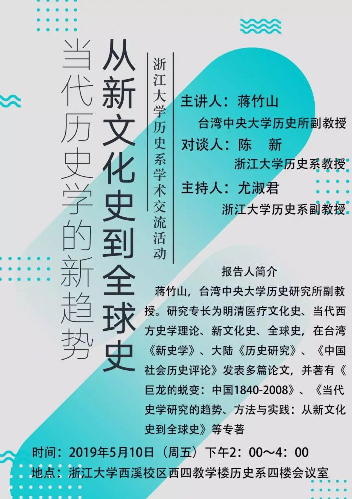 讲座信息|从新文化史到全球史:当代历史学的新趋势