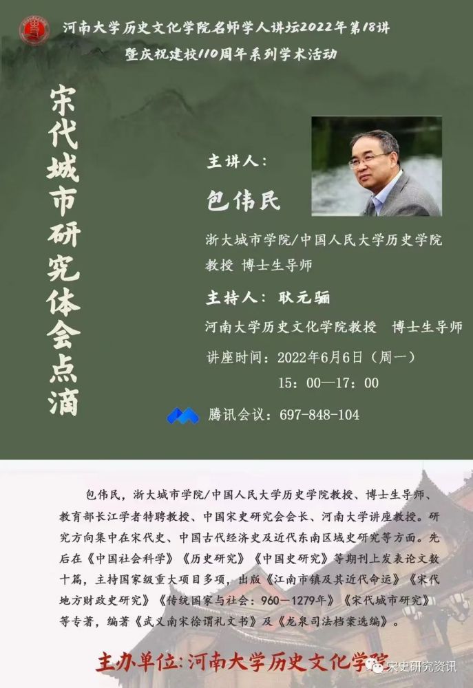 【讲座】包伟民:宋代城市研究体会点滴丨202206-13(总第2015期)